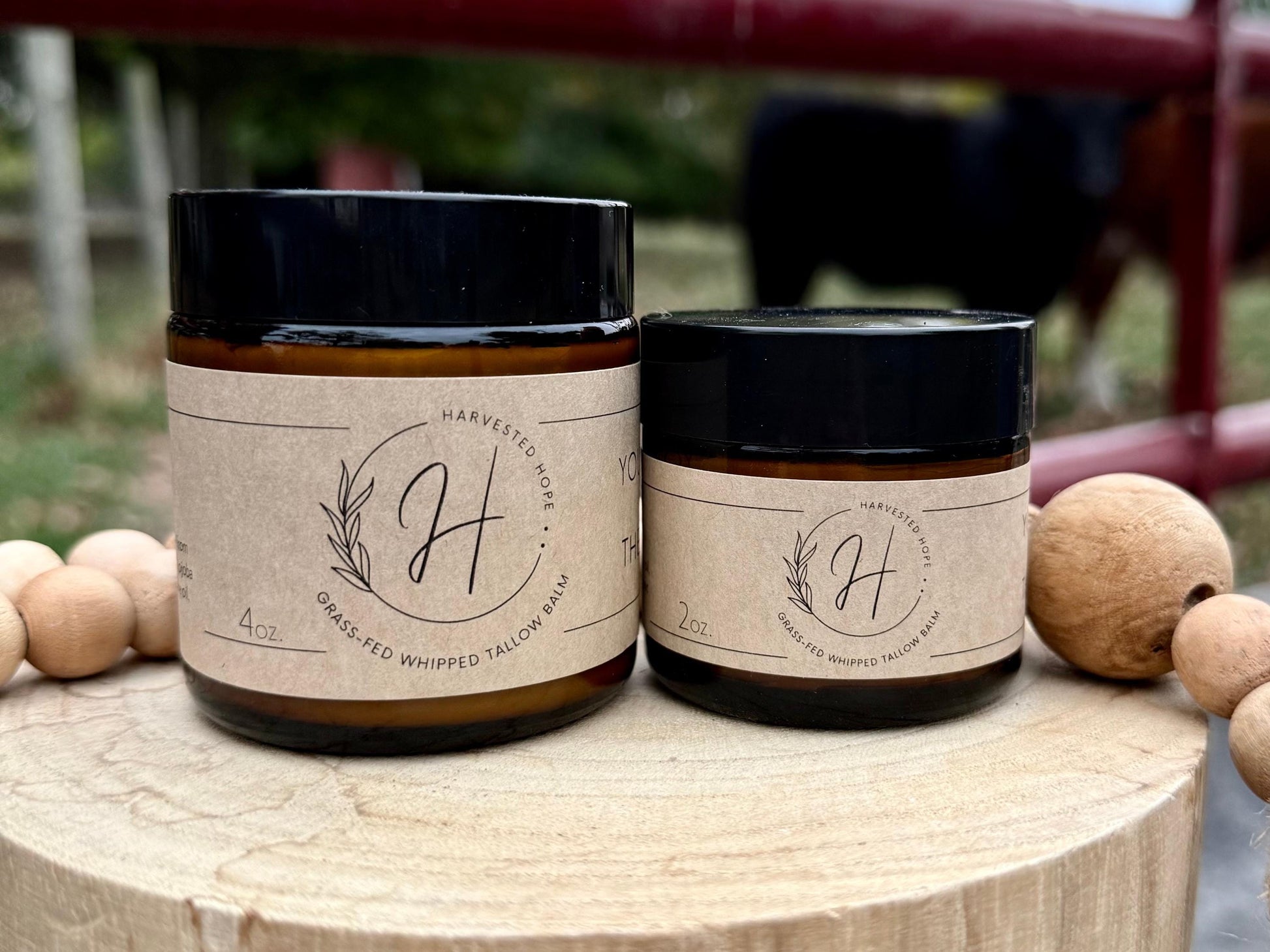 At Harvested Hope we believe that taking care of yourself should also mean taking care of others. Our grass-fed, pasture-raised beef tallow is sourced locally and deeply hydrating. It is whipped to perfection with only pure, simple, and organic ingredients. From aging skin to diaper rash, our balm is suitable and safe for all ages.